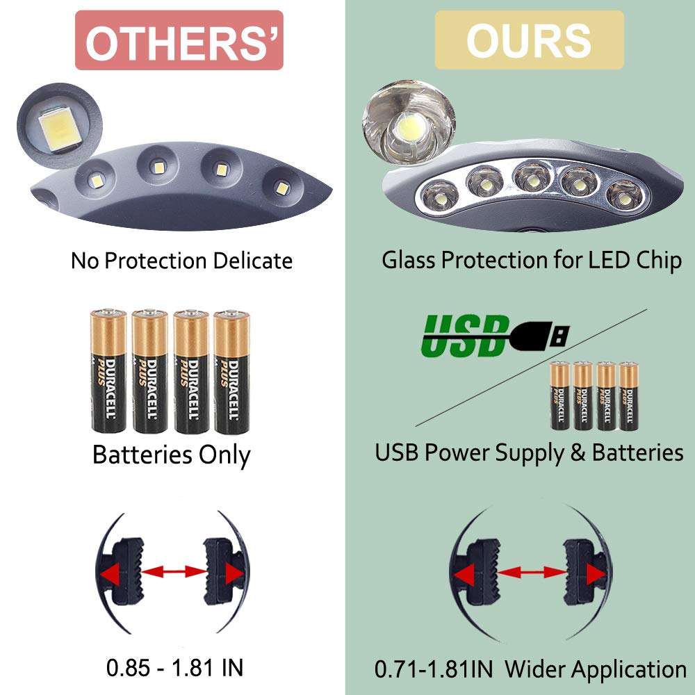 4.【4 AA Batteries Powered】Depending on the batteries you use, can continually work about 10 hours (28 LEDs) to 24 hours (4 LEDs) with a set of batteries, greatly reducing the hassle of replacing batteries frequently.