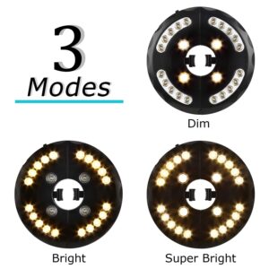 1.【3 Lighting Modes】Able to adjust different brightness by pressing side switch, so you can press once for 4 LED lights(dim), twice for 20 LED lights(bright) or three times for 24 LED lights(ultra bright), which can easily satisfy your desired brightness.